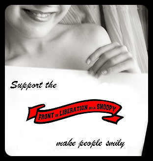En fin d'été, je me décide à écrire un texte pour expliquer calmement les choses, puis contacte l'ouvreur de la voie pour savoir ce qu'il en pense. Prenant mon rôle très à coeur, j'en viens même à créer le logo du F.L.S : le "Front de libération de la Snoopy" dont je suis l'unique membre.
